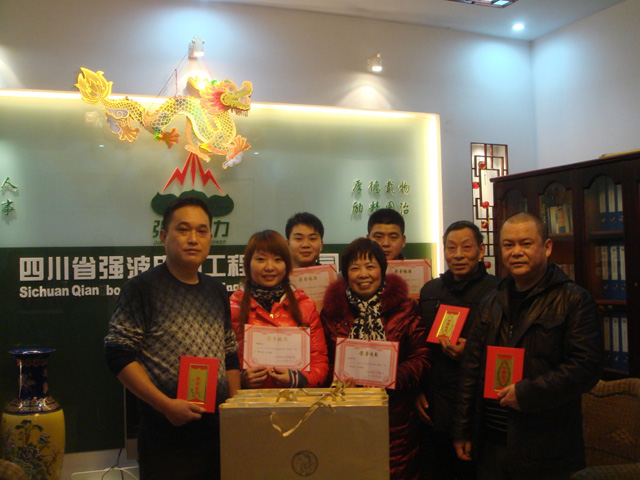 在这一年里,公司涌现出一批“孝忠义做人,老实人做事”的典型。为激励广大员工争先创优,公司通过民主的选举评议后,决定对蒲礼成、官成兴、潘国礼、罗娟、孙泉、刘雨、周磊7人授予“优秀员工”称号并给予物品奖励。希望公司全体员工以此为榜样,在2012年的工作中再接再厉,不怕艰难,继续奋斗,发扬强波精神!