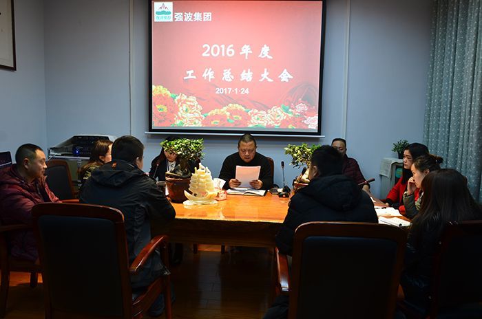 2017年1月24日上午9:40公司全体职员欢聚一堂在强波公司会议室召开了2016年度总结大会,回首2016,我们感慨万千。因为有了全体职员的努力,公司才会有今天的成就;因为有了全体职员的支持,公司才会有如此的顺利;因为有了全体职员的坚持,公司才会在市场竞争中站稳脚跟;有了全体职员的速度,公司才会风雨无阻、一路前行。感谢全体员工对公司这一年以来的贡献与帮助,新的一年已经来临,祝大家新年快乐,全家幸福! 今天召开公司2016年终总结大会,主要目的是一起回顾过去一年取得的成绩、以及我们工作中发现的问题,并借此机会总结经验、积累教训,为我们在新的一年里开展工作打好基础。 (一)董事长为本次会议致词