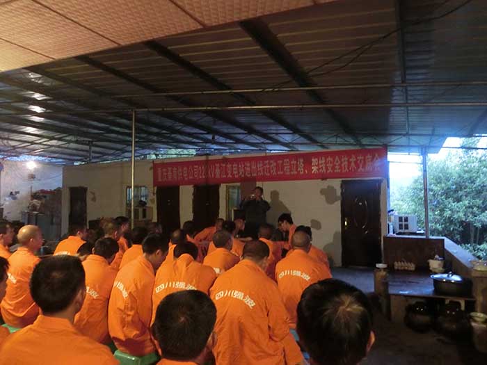 重庆綦南供电公司220KV綦江变电站进出线迁改工程立塔、架线安全培训